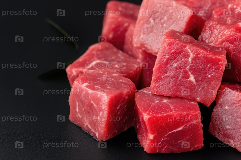 Куски сырого говяжьего мяса на черном фоне. Крупный план