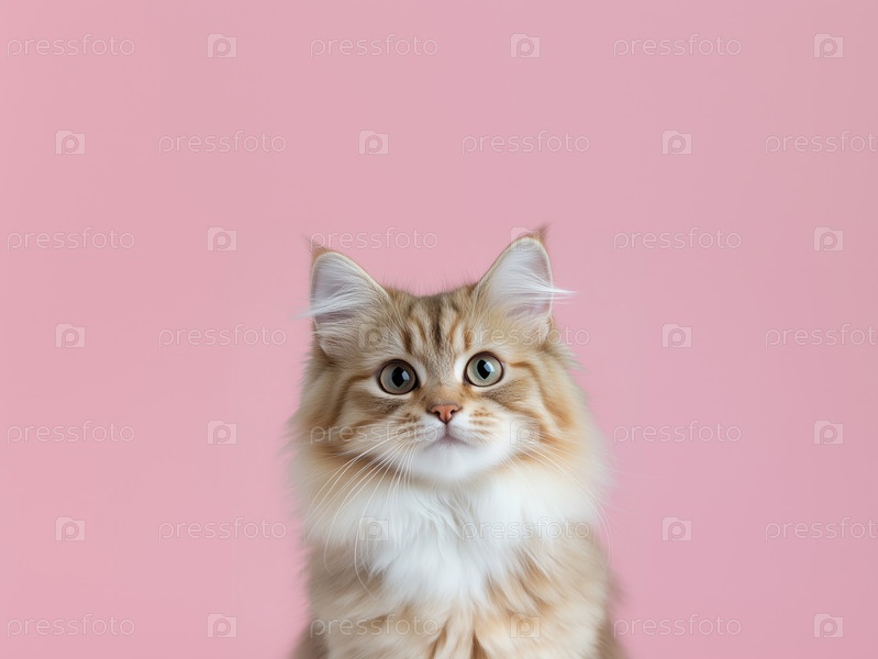 Милый котенок мейн-кун на розовом фоне с местом для текста