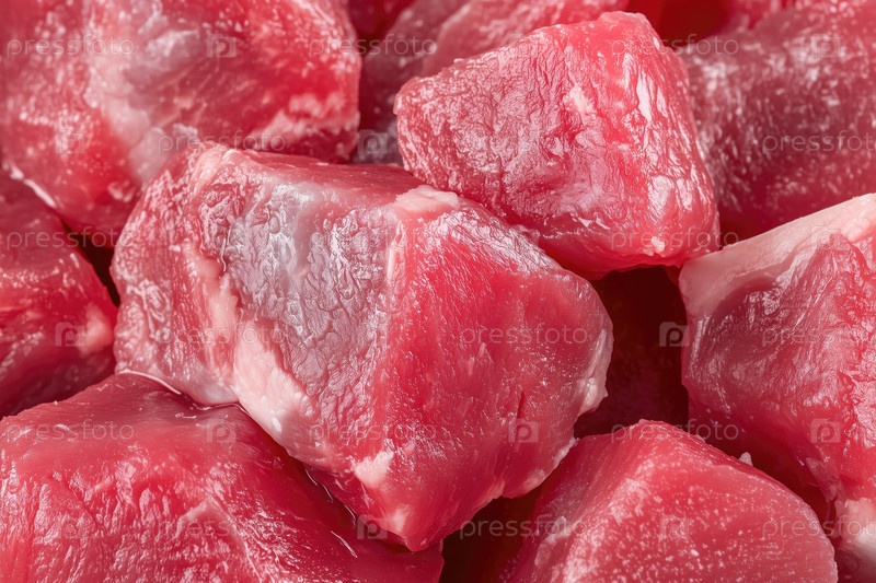 Сырые кубики говяжьего мяса в качестве фона, крупный план