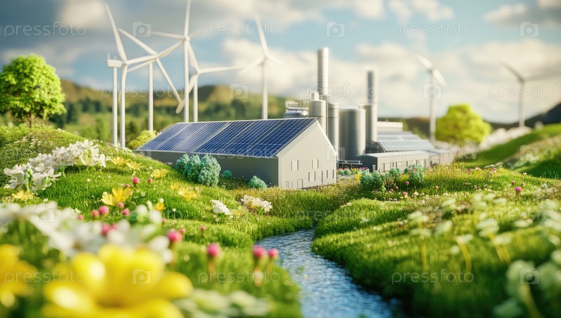 Завод использует возобновляемые источники для выработки электроэнергии в цветущей долине