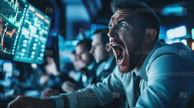 Группа профессионалов интенсивно анализирует финансовые данные в режиме реального времени на больших экранах, подчеркивая динамичный мир биржевой торговли и анализа рынка