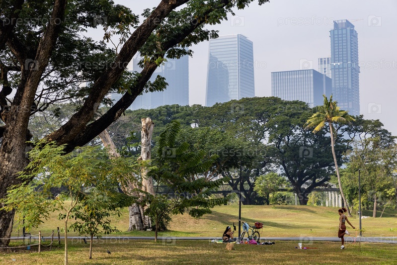 Таиланд. Бангкок. Люди занимаются спортом на территории парка Бенжакити Парк. Таиланд. Бангкок. People play sports in Benjakiti Park