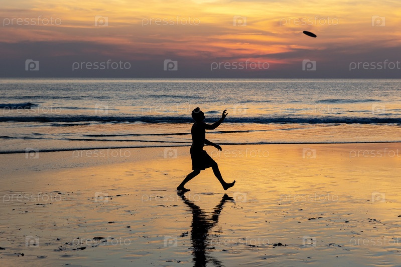 Таиланд. Ко Чанг. Отдыхающие играют в фрисби на берегу моря во время отливов. Тайланд. Ко Чанг. Отдыхающие играют в фрисби на пляже при малой приливе
