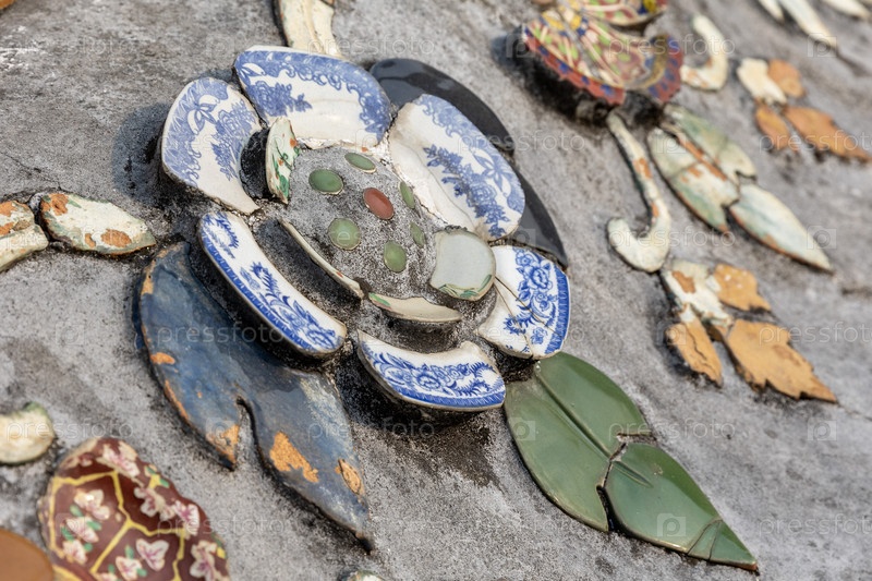 Таиланд. Бангкок. Фрагменты керамических украшений храма Ват Арун. Таиланд. Бангкок. Fragments of ceramic ornaments of Wat Arun temple