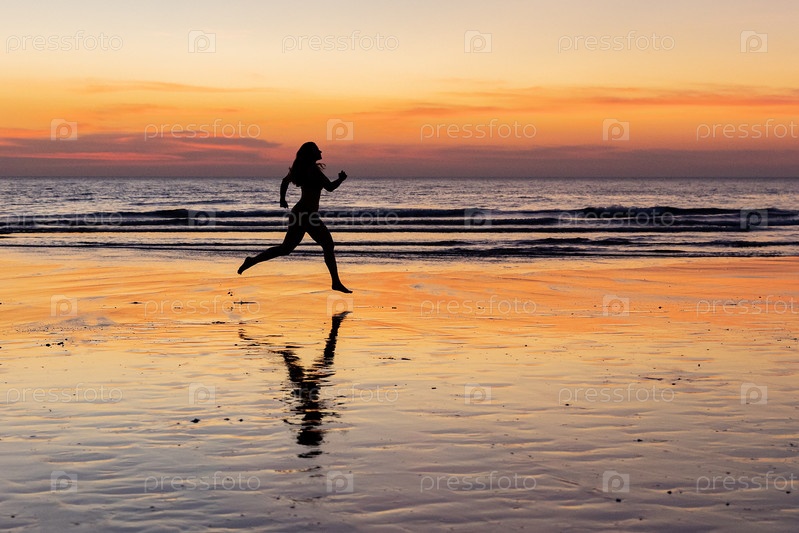 Таиланд. Ко Чанг. Девушка бежит вдоль берега моря во время отлива. Таиланд. Ко Чанг. Девочка бегает по берегу моря при приливе