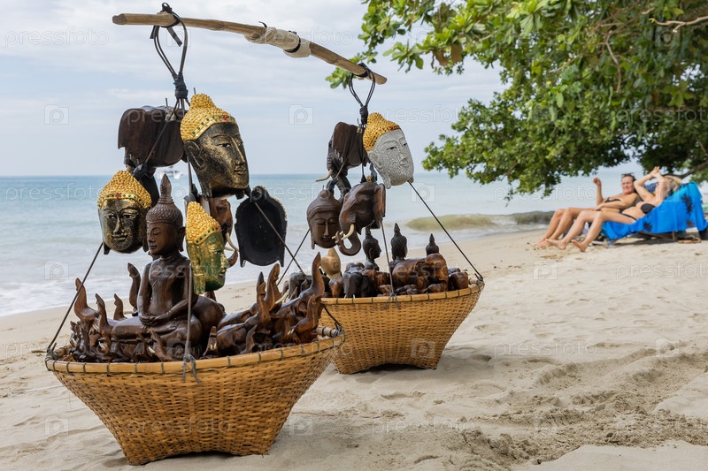 Тайланд. Ко Чанг. Торговля сувенирами на пляже для туристов. Таиланд. Koh Chang. Торговля сувенирами на пляже для туристов