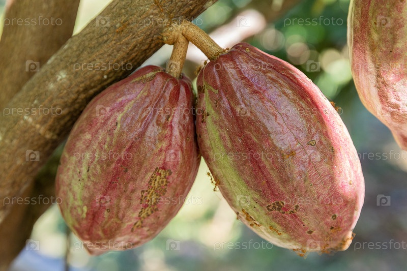 Таиланд. Ко Чанг. Плод какао-растительного растения на дереве. Тайланд. Ко Чанг
