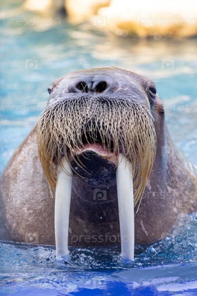 Таиланд. Бангкок. Морж в воде в зоопарке Сафари-Ворлд. Таиланд. Бангкок. Мороз в воде в сафари-мировом зоопарке