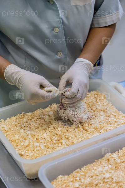 Таиланд. Бангкок. Работник кормит цыплят попугаев в инкубаторе в зоопарке Safari World Zoo. Таиланд. Бангкок. An employee feeds parrot chicks in an incubator at Safari World Zoo