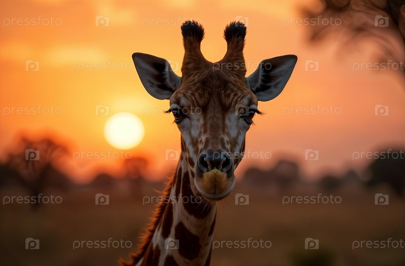 Жираф в среде обитания Африка. Африканская саванна. Длинная шея. Генеративный ИИ