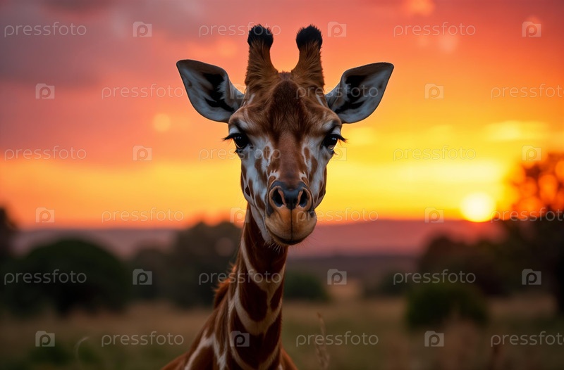 Жираф в среде обитания Африка. Африканская саванна. Длинная шея. Генеративный ИИ