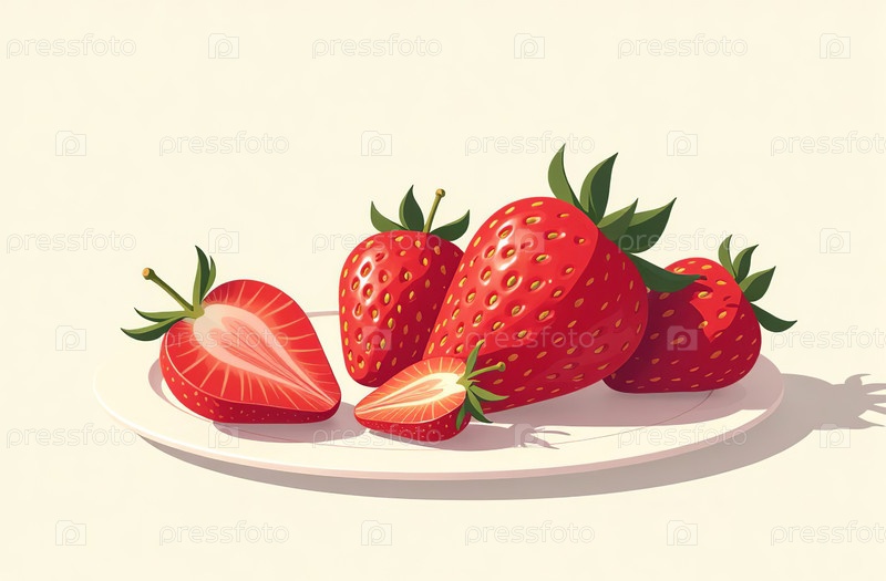 Клубника на столе, крупный план свежих ягод, яркая кухня. Генеративный искусственный интеллект