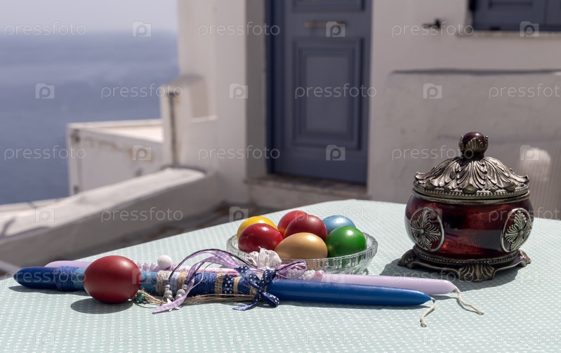 Пасхальная композиция со свечами и яйцами