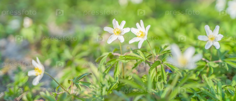Белые цветы среди зелени в солнечный день