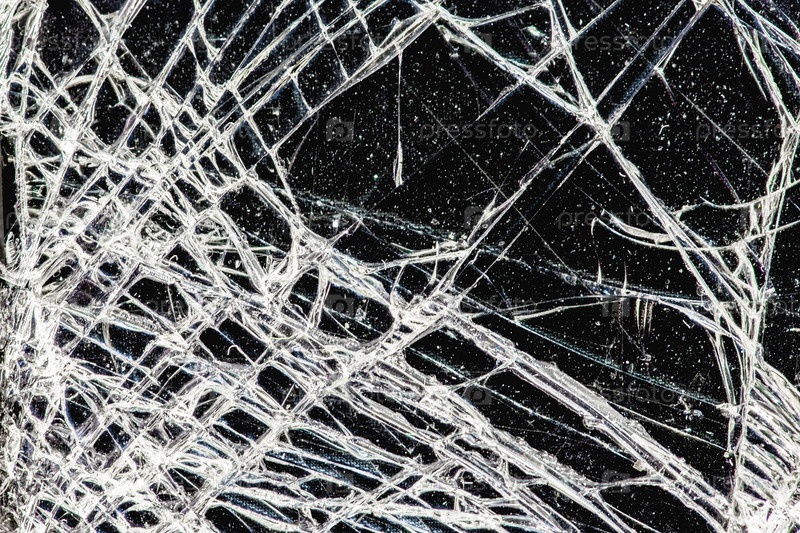 Белое треснувшее стекло с пылью на черном фоне, текстура