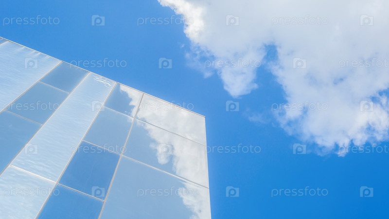 Стеклянная конструкция на фоне голубого неба и облаков
