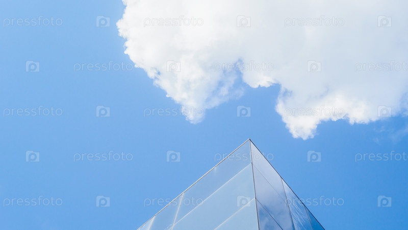 Стеклянная конструкция на фоне голубого неба и облаков