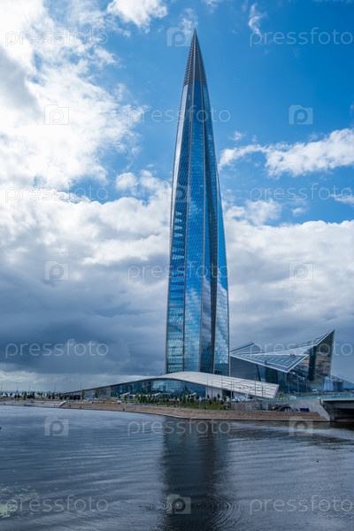 Санкт-Петербург, Россия - 08.07.24. Небоскреб Лахта Центр возвышается в облачном небе