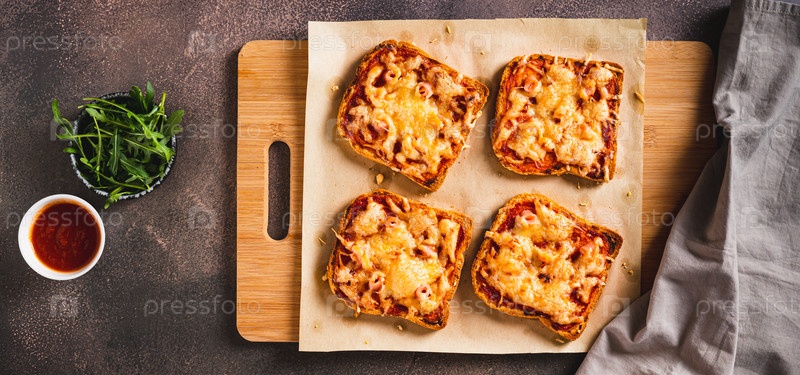 Домашняя пицца с беконом и сыром на доске на столешнице веб-баннер