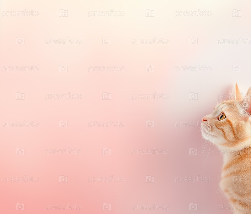 Милый рыжий кот выглядывает на пастельно-розовом фоне. Копировать пространство