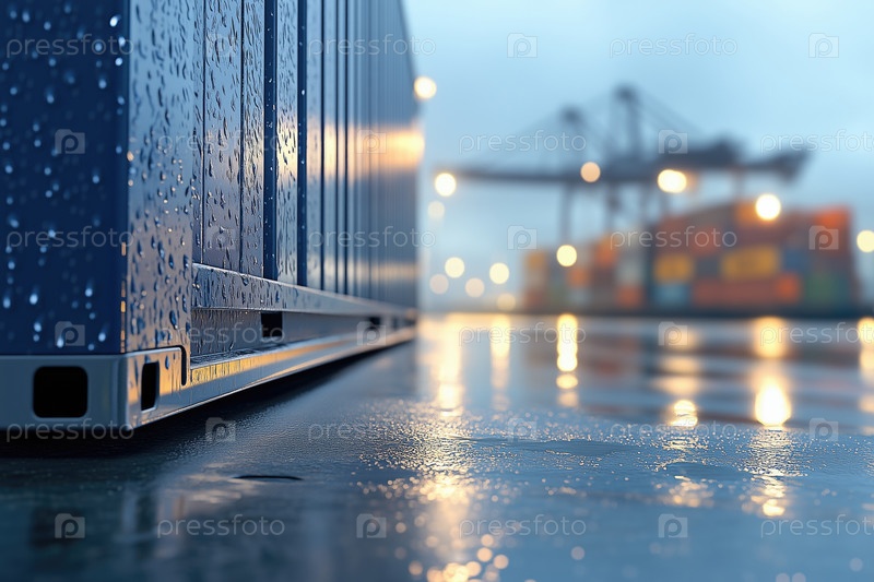 Грузовой контейнер с промышленным портом на заднем плане. концепция международной торговли
