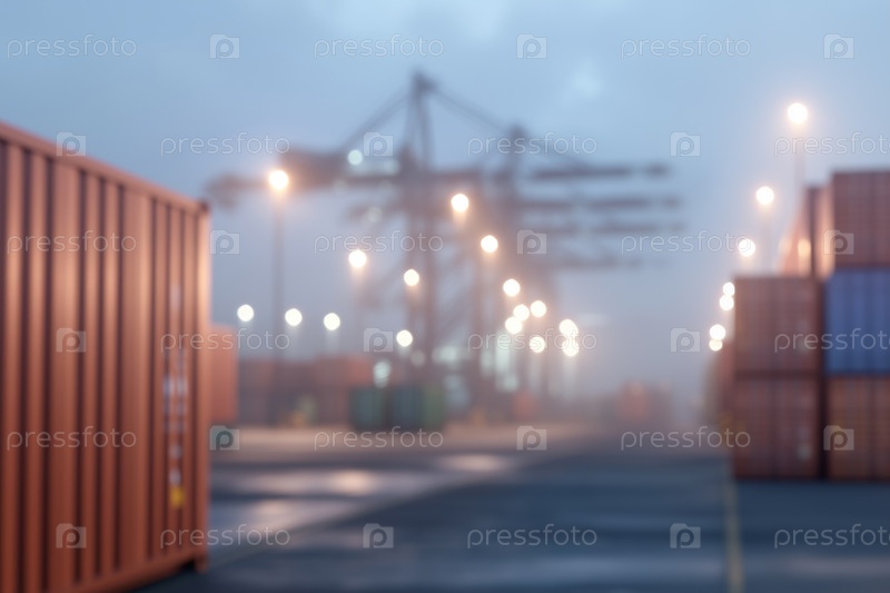 Размытый фон с промышленным портом с контейнерами и огнями боке. концепция грузоперевозок