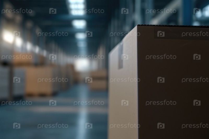 Коробки на полке на складе, крупным планом. Концепция логистики и оптовой торговли