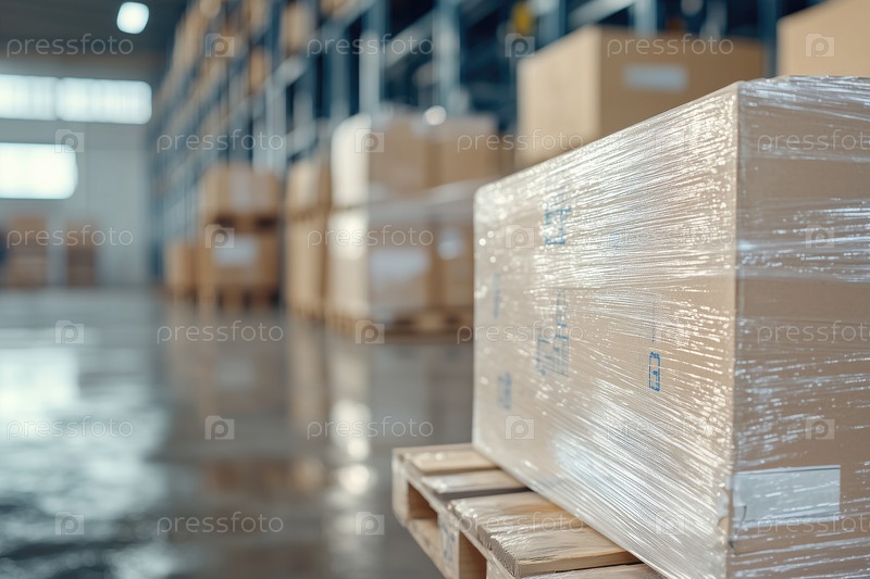 Склад или хранилище с рядами поддонов для транспортировки и хранения товаров