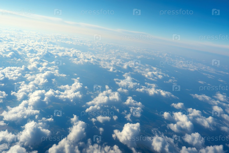 Облачный пейзаж, вид сверху на голубое небо и белые облака
