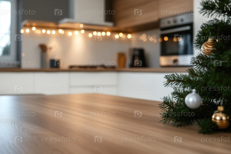 Праздничный кухонный фон для предметной фотосъемки, пустая поверхность стола на переднем плане