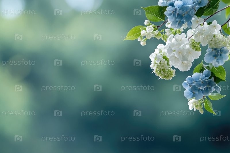 Нежный мягкий фон с синими и белыми цветами гортензии и пространством для копирования