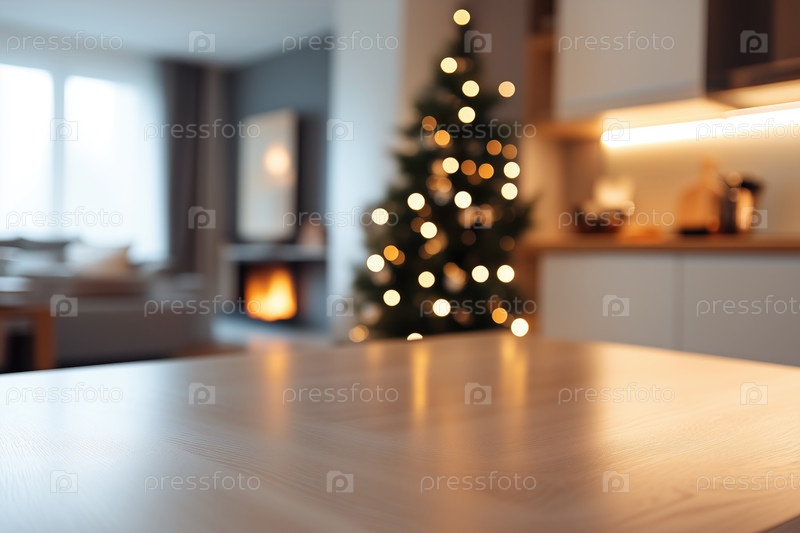 Рождественский кухонный фон для предметной фотографии, пустая поверхность стола на переднем плане