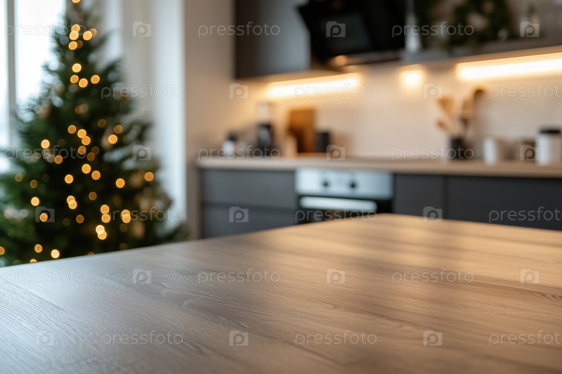 Рождественский кухонный фон для предметной фотографии, пустая поверхность стола на переднем плане