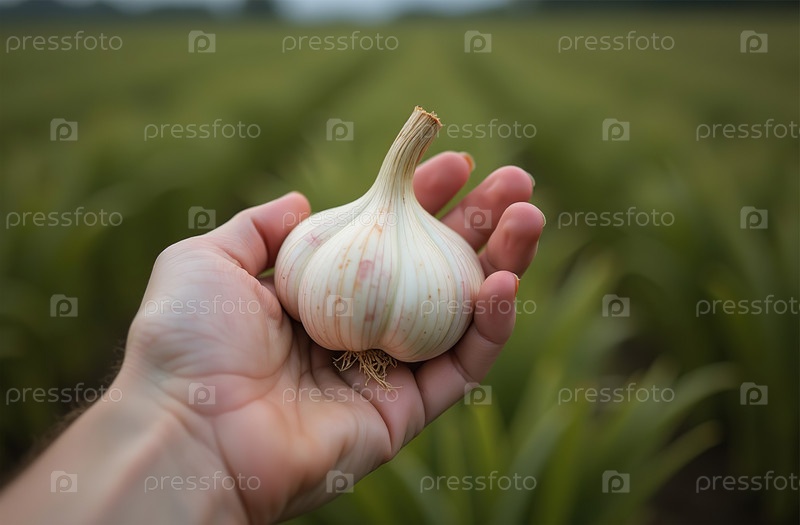 Большой огород с чесноком, ферма, рассада, растения, овощи. Генеративный искусственный интеллект