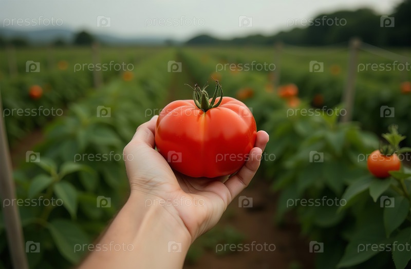 Большой томатный огород, ферма, рассада, растения, овощи. Генеративный ИИ