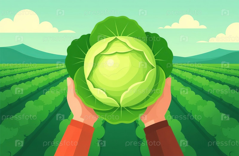 Большой капустный огород, ферма, рассада, растения, овощи. Генеративный ИИ