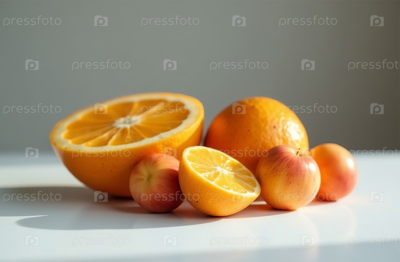 Натюрморт на столе, крупный план свежих фруктов, яркая кухня. Генеративный искусственный интеллект