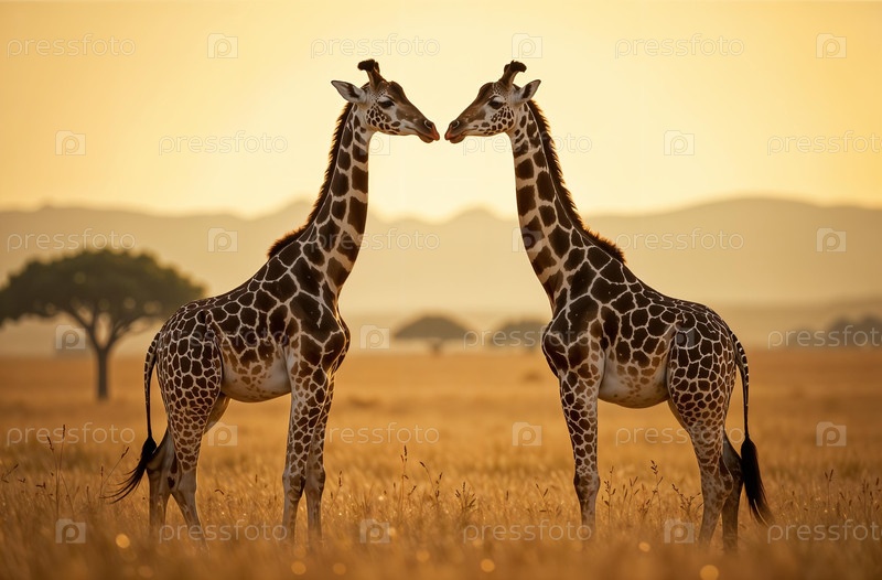 Жираф в среде обитания Африка. Африканская саванна. Длинная шея. Генеративный ИИ