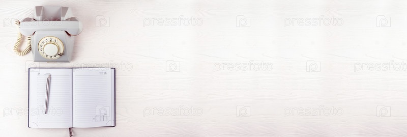 Старый телефон с блокнотом