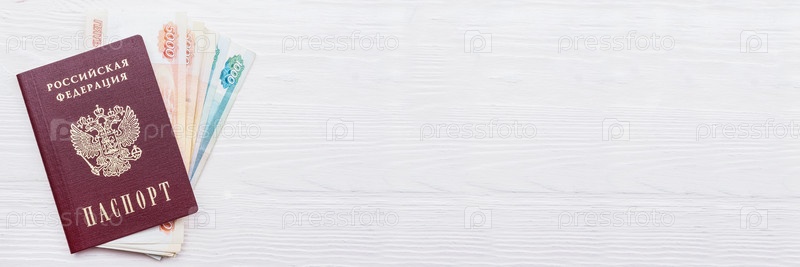 Российский паспорт с деньгами