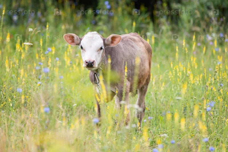 Теленок на лугу