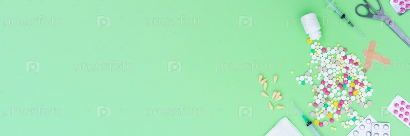Таблетки на зеленом фоне