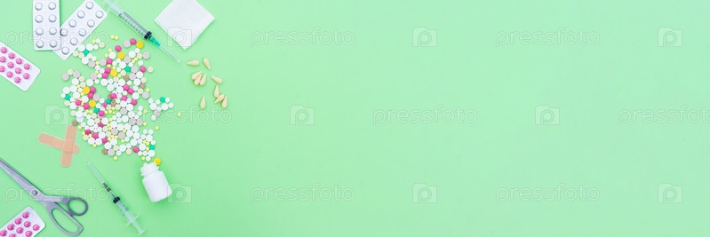 Таблетки на зеленом фоне