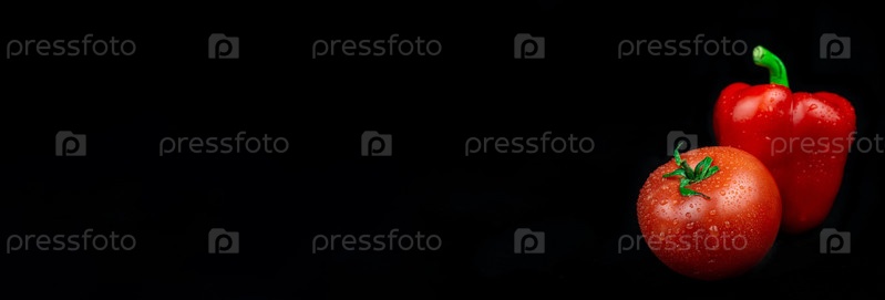 Перец и помидор на черном фоне