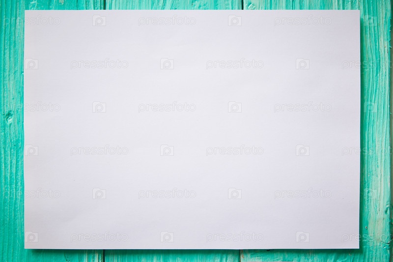 Белый макет пустой бумаги на зеленом деревянном фоне. Копировать место для текста
