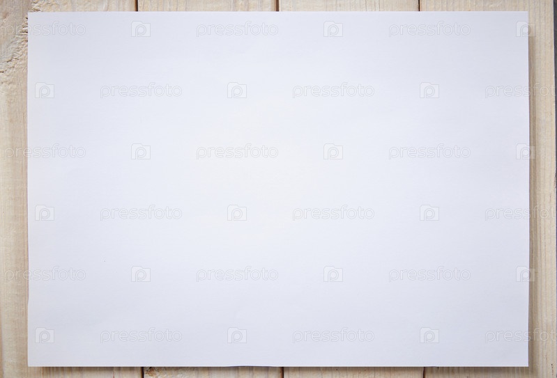 Макет из белой бумаги для рисования или макета на светлом деревянном фоне. Вид сверху, плоский белый фон