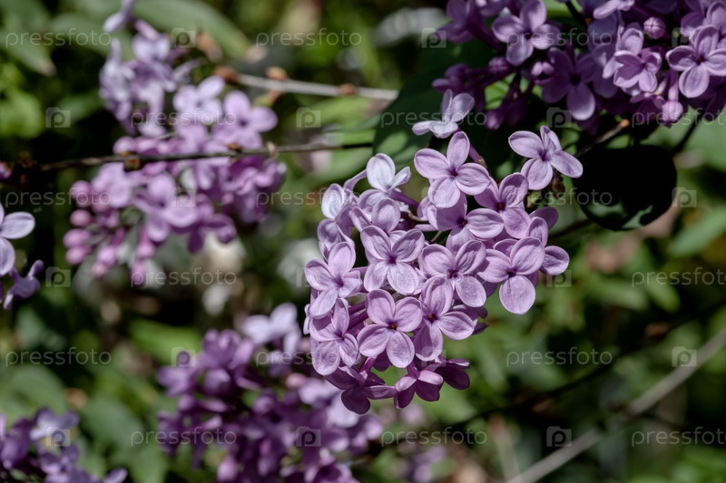 Яркий куст (Syringa) с фиолетовыми цветами, растущий в саду крупным планом