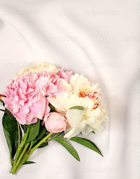 Букет свежих пионов на солнечном фоне.Абстрактная цветочная композиция.Баннер для поздравлений с Днем матери, свадьбой, Женским днем, днем рождения. Минимальная современная эстетика, элегантная концепция красоты