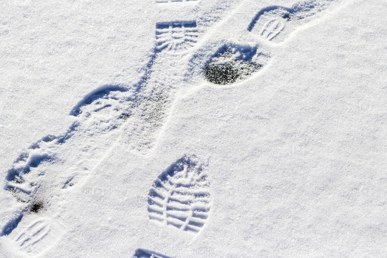 Множественные следы на снегу. Текстура