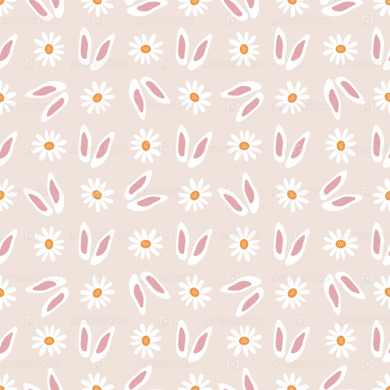Бесшовный узор в пастельных тонах с ушками и цветами